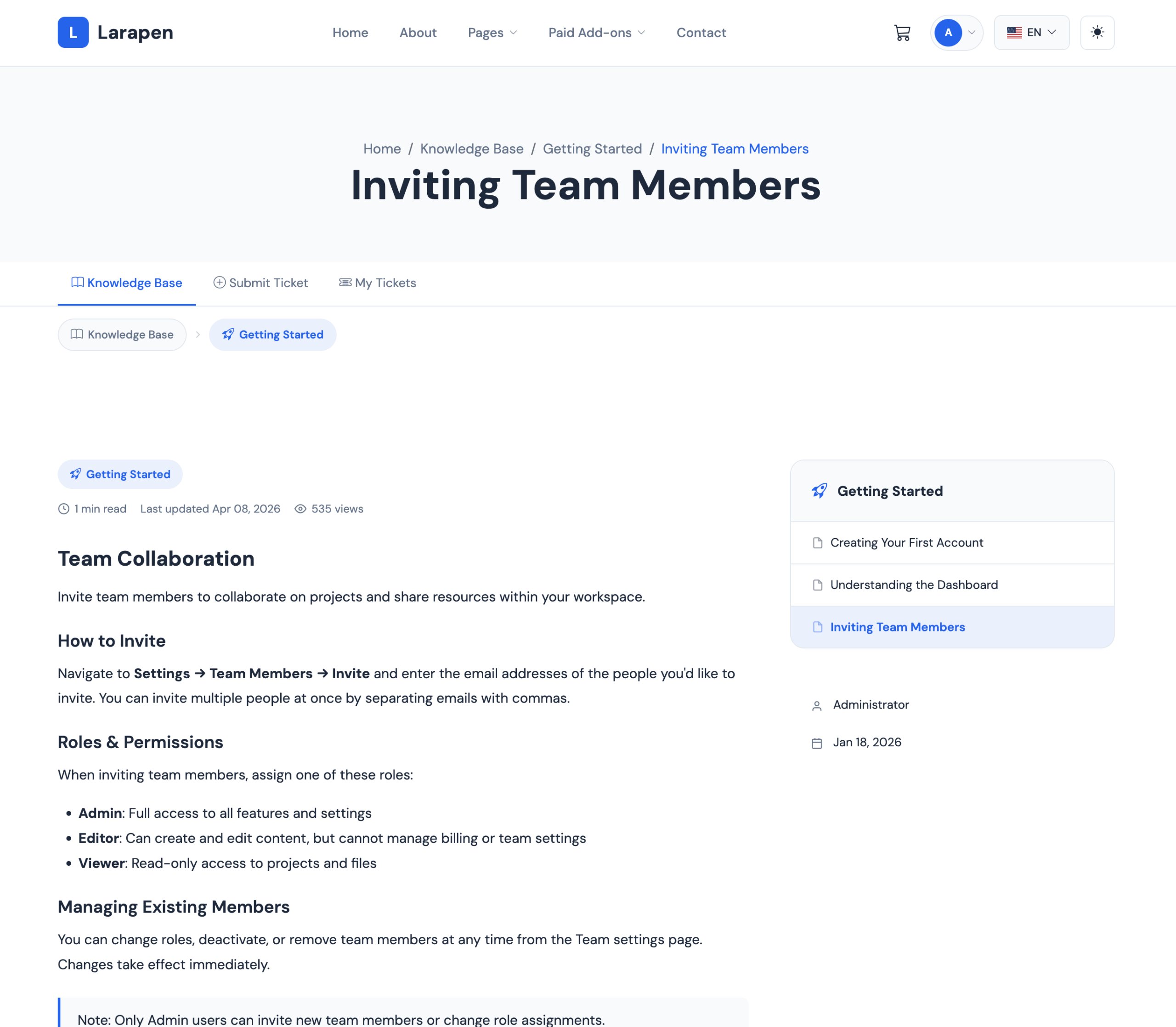 Réduisez les tickets de support et autonomisez vos utilisateurs avec une base de connaissances complète en libre-service. Organisez les articles d'aide en collections, gérez les départements de support et laissez les visiteurs trouver des réponses par eux-mêmes.