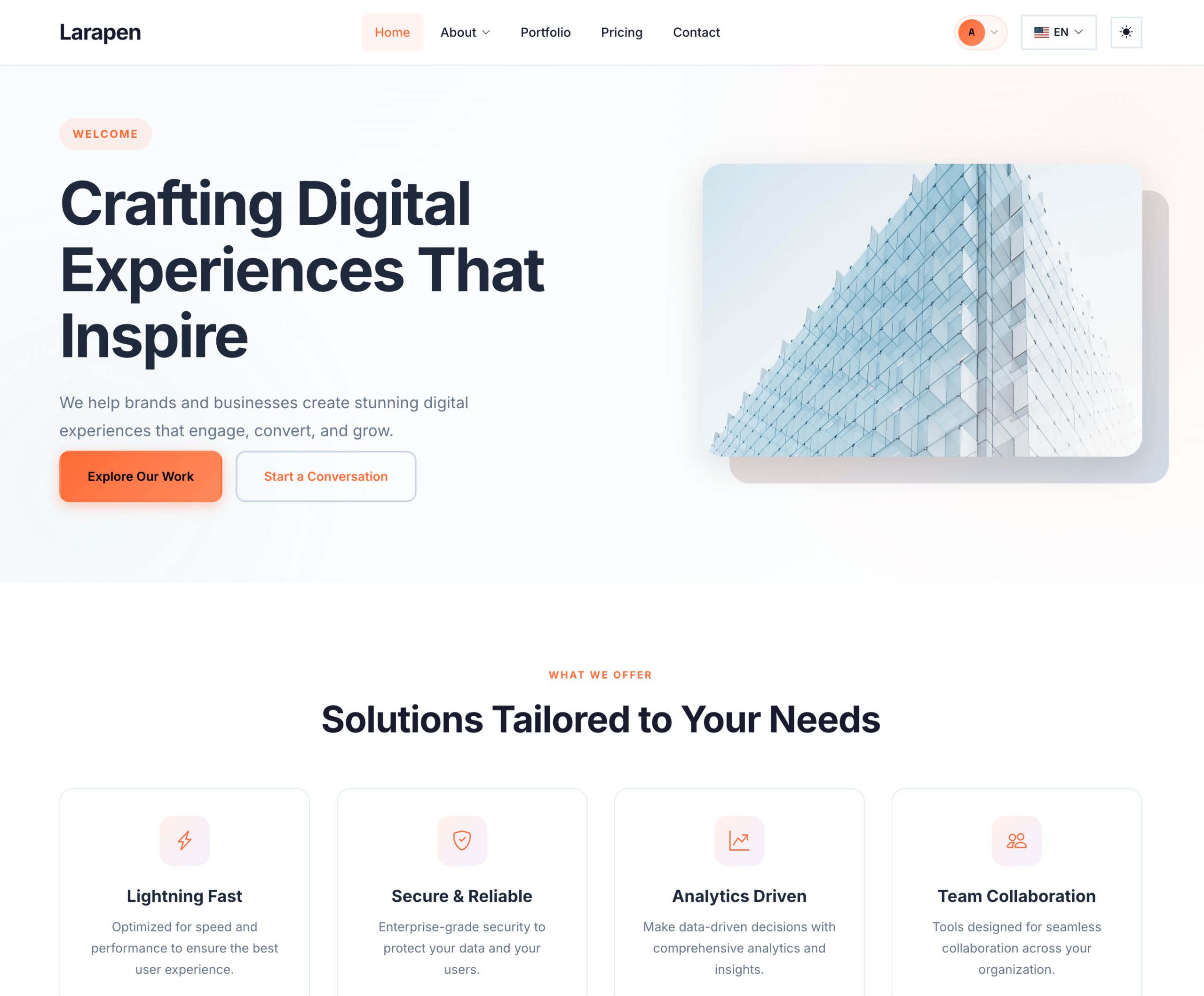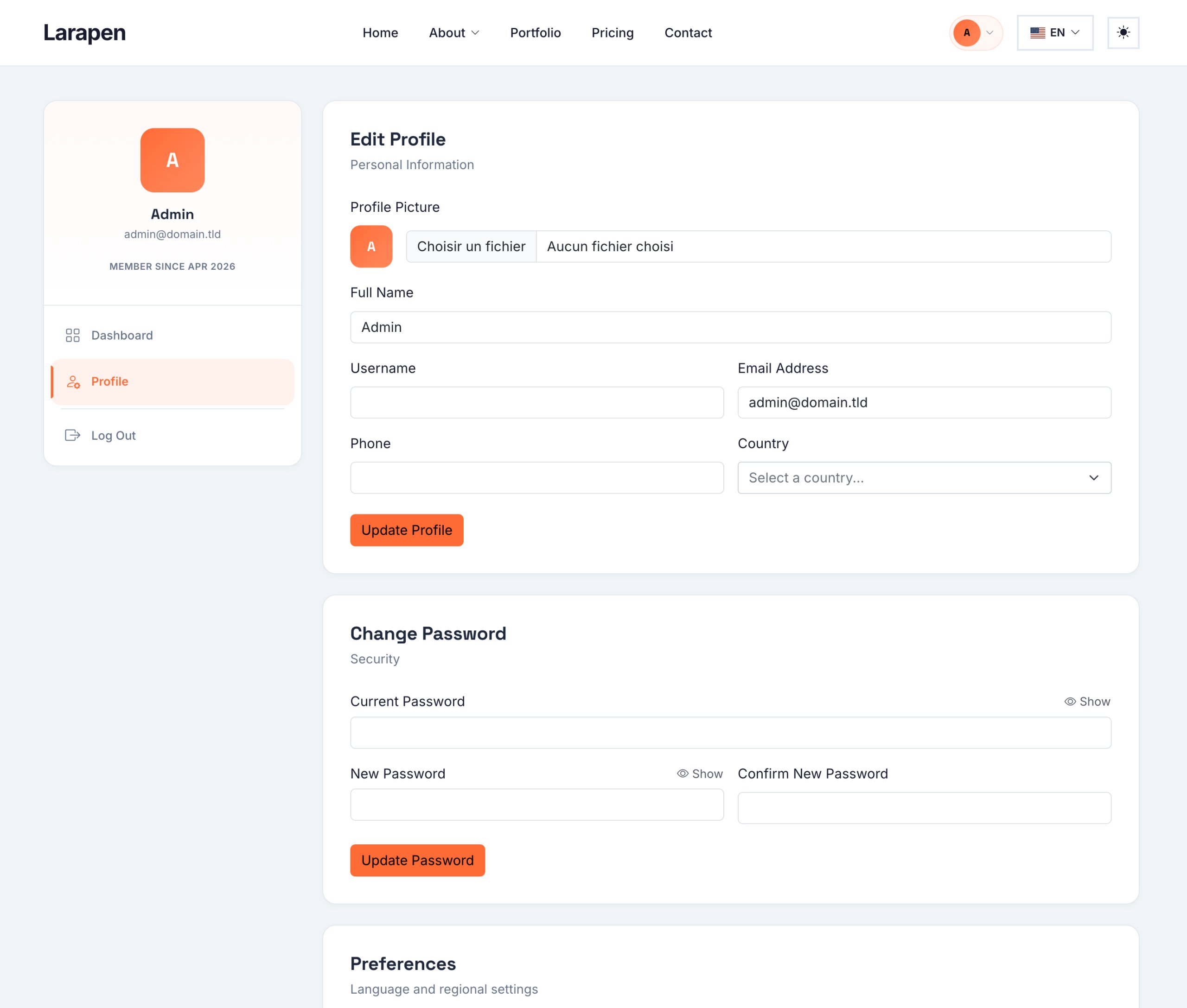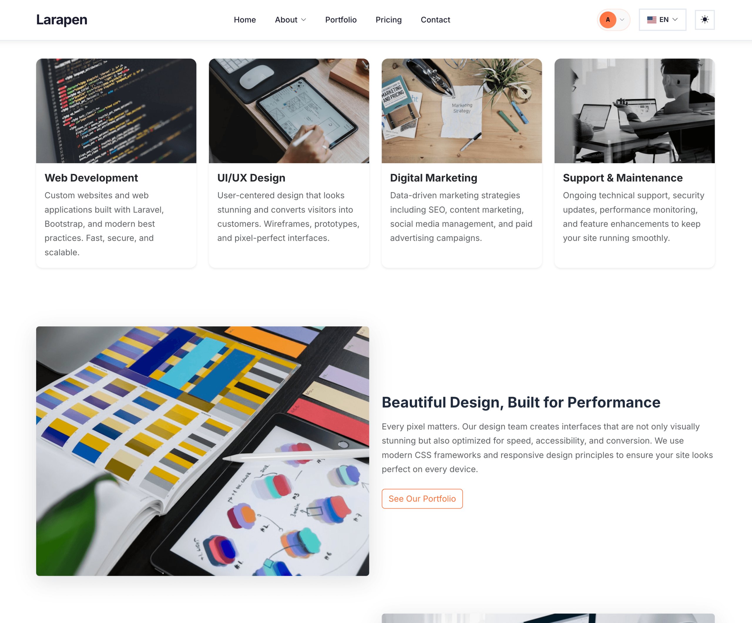 Un pack de theme complet concu pour les professionnels creatifs. Vendu separement de l'application Larapen de base.