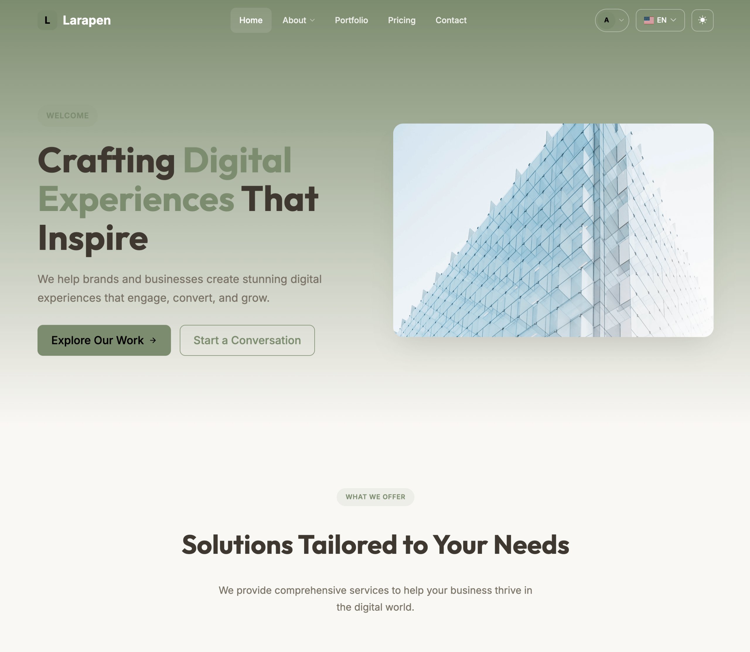 Un pack de theme complet qui apporte chaleur et authenticite a votre presence web. Vendu separement de l'application Larapen de base.