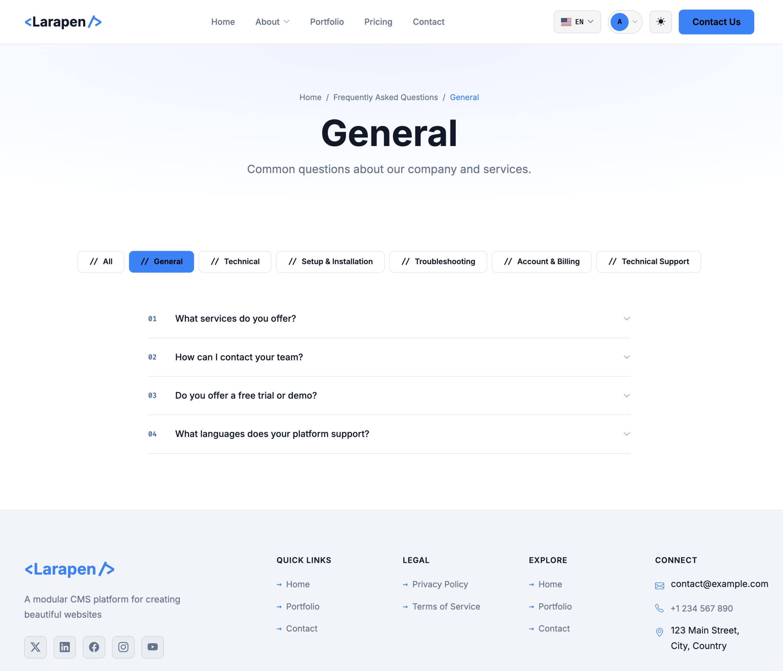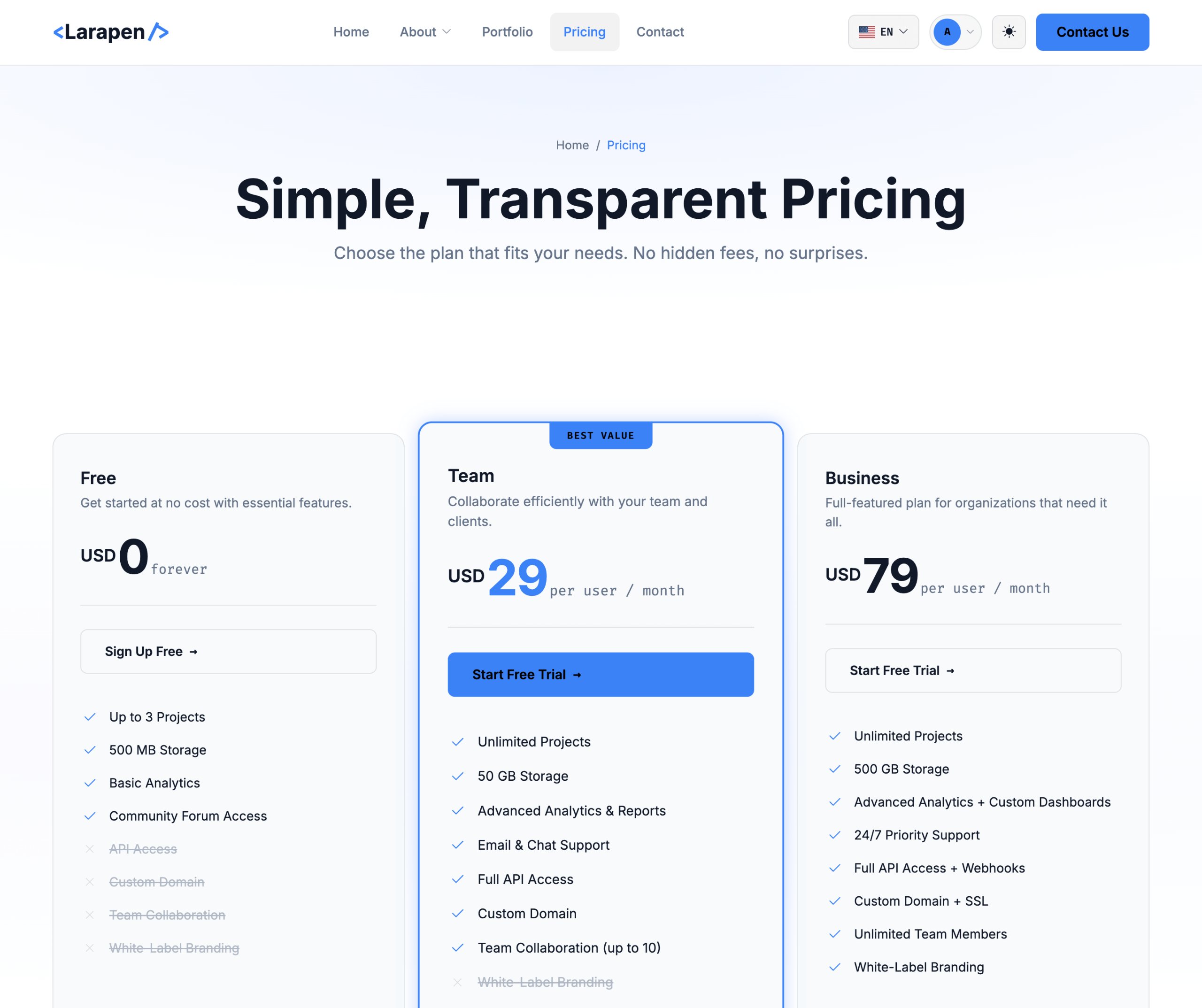 Un pack de theme complet construit pour l'industrie tech. Vendu separement de l'application Larapen de base.
