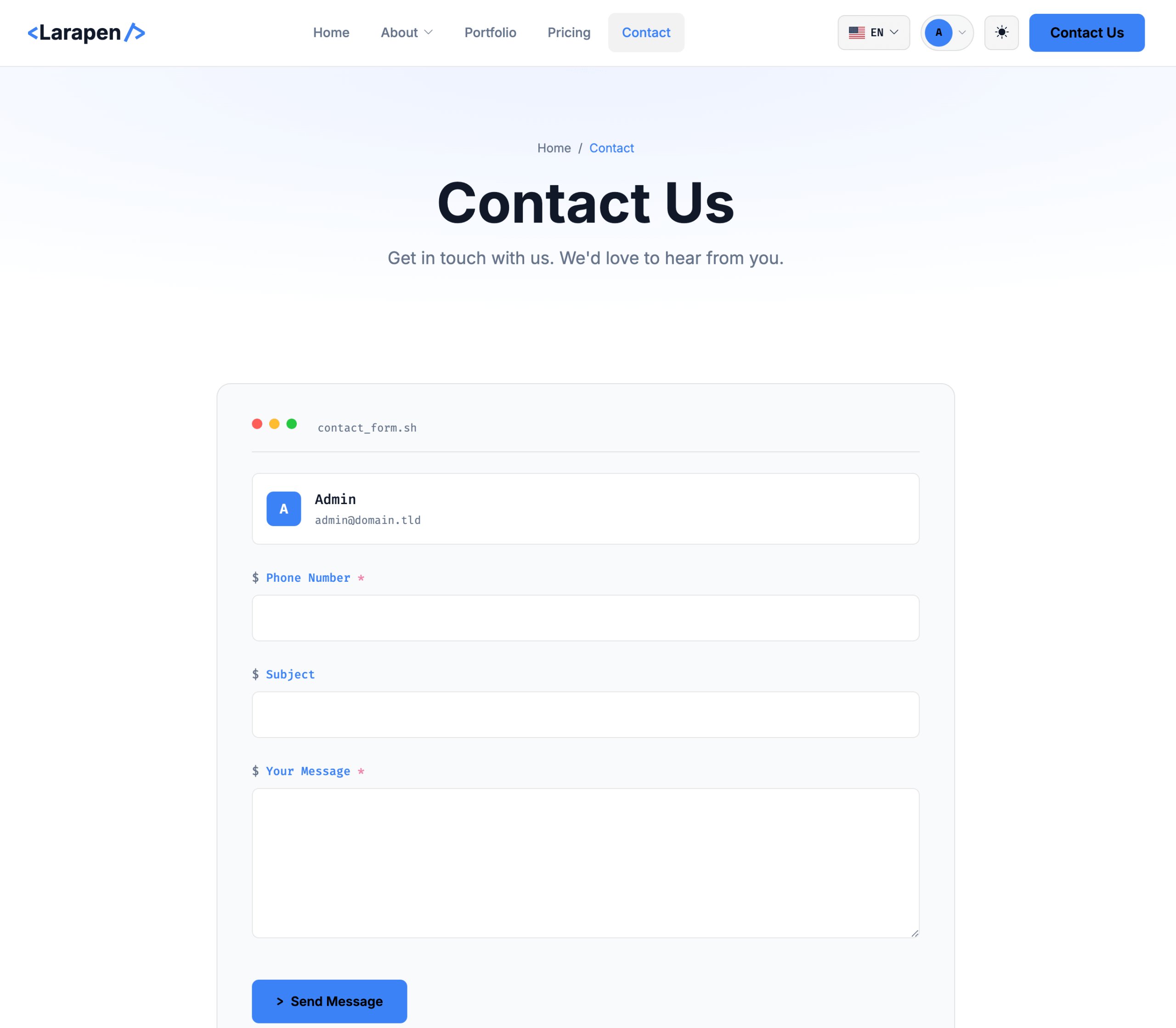 Des vues stylisees pour chaque module Larapen. Les articles de blog obtiennent une mise en page de publication tech. Les produits de la boutique s'affichent comme des licences logicielles. Les tableaux de prix utilisent le systeme d'accent par degrades. Tous les modules s'integrent nativement dans le langage de design Technology.