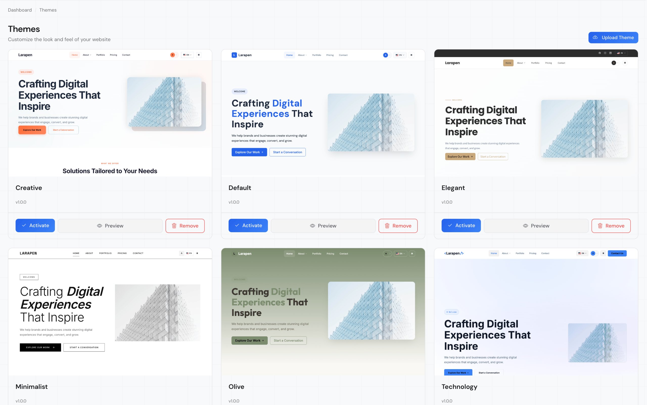 Larapen est une plateforme CMS modulaire construite avec Laravel, conçue pour aider les entreprises et les développeurs à créer des sites web flexibles et impressionnants. Que vous ayez besoin d'une simple page d'accueil, d'un site portfolio, d'un blog, d'un système de réservation ou d'une boutique e-commerce complète, Larapen s'adapte à vos besoins grâce à son puissant système de thèmes et son architecture extensible de modules. Installez uniquement ce dont vous avez besoin et gardez votre site rapide et ciblé.