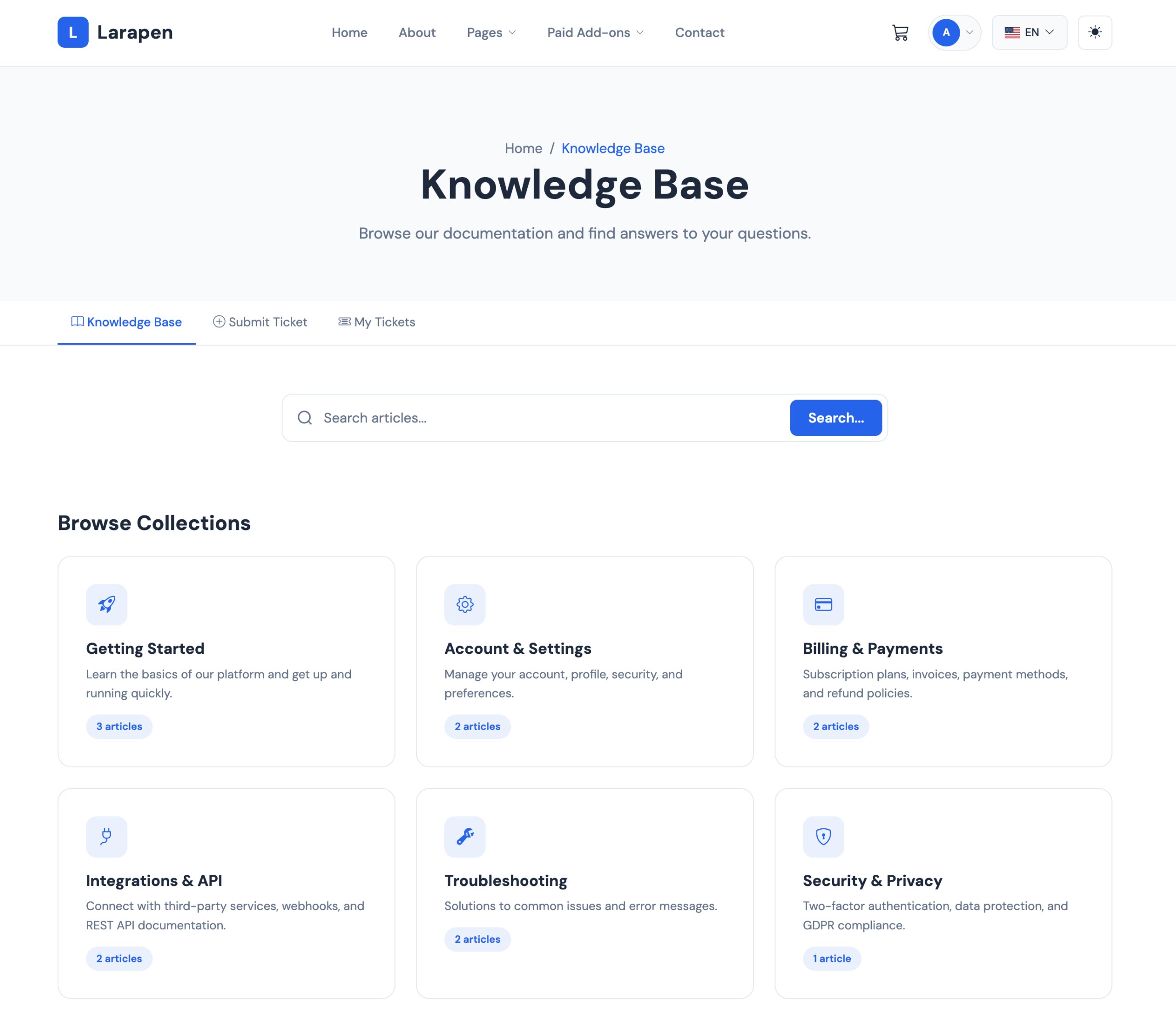 Réduisez les tickets de support et autonomisez vos utilisateurs avec une base de connaissances complète en libre-service. Organisez les articles d'aide en collections, gérez les départements de support et laissez les visiteurs trouver des réponses par eux-mêmes.
