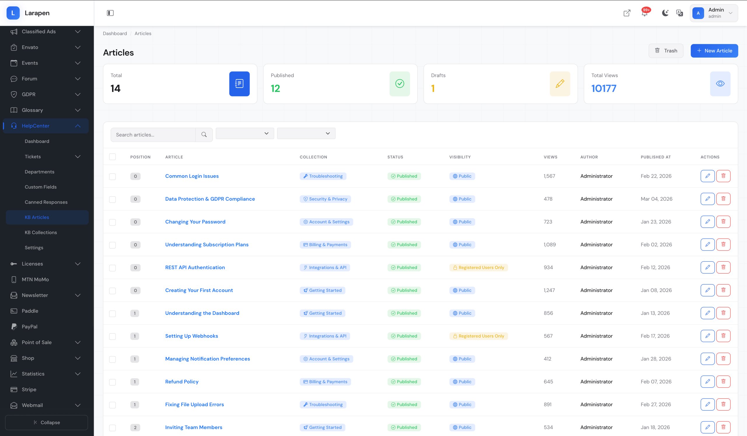 Ajoutez des articles à la base de connaissances avec l'éditeur riche. Assignez-les à des collections et publiez quand vous êtes prêt.