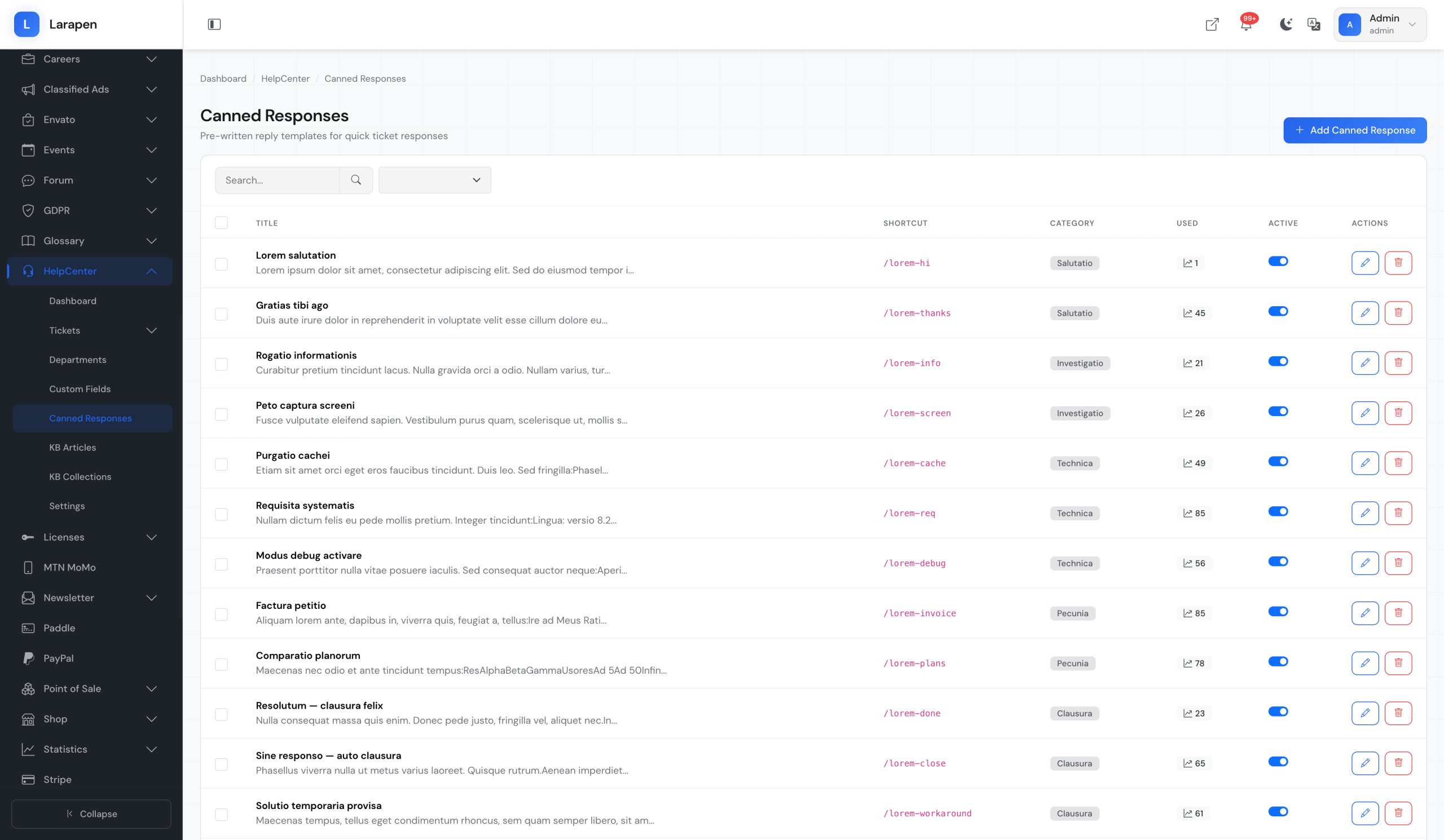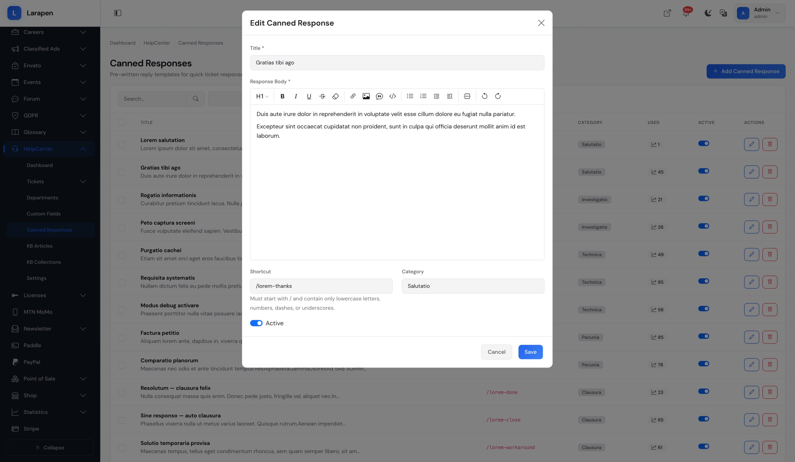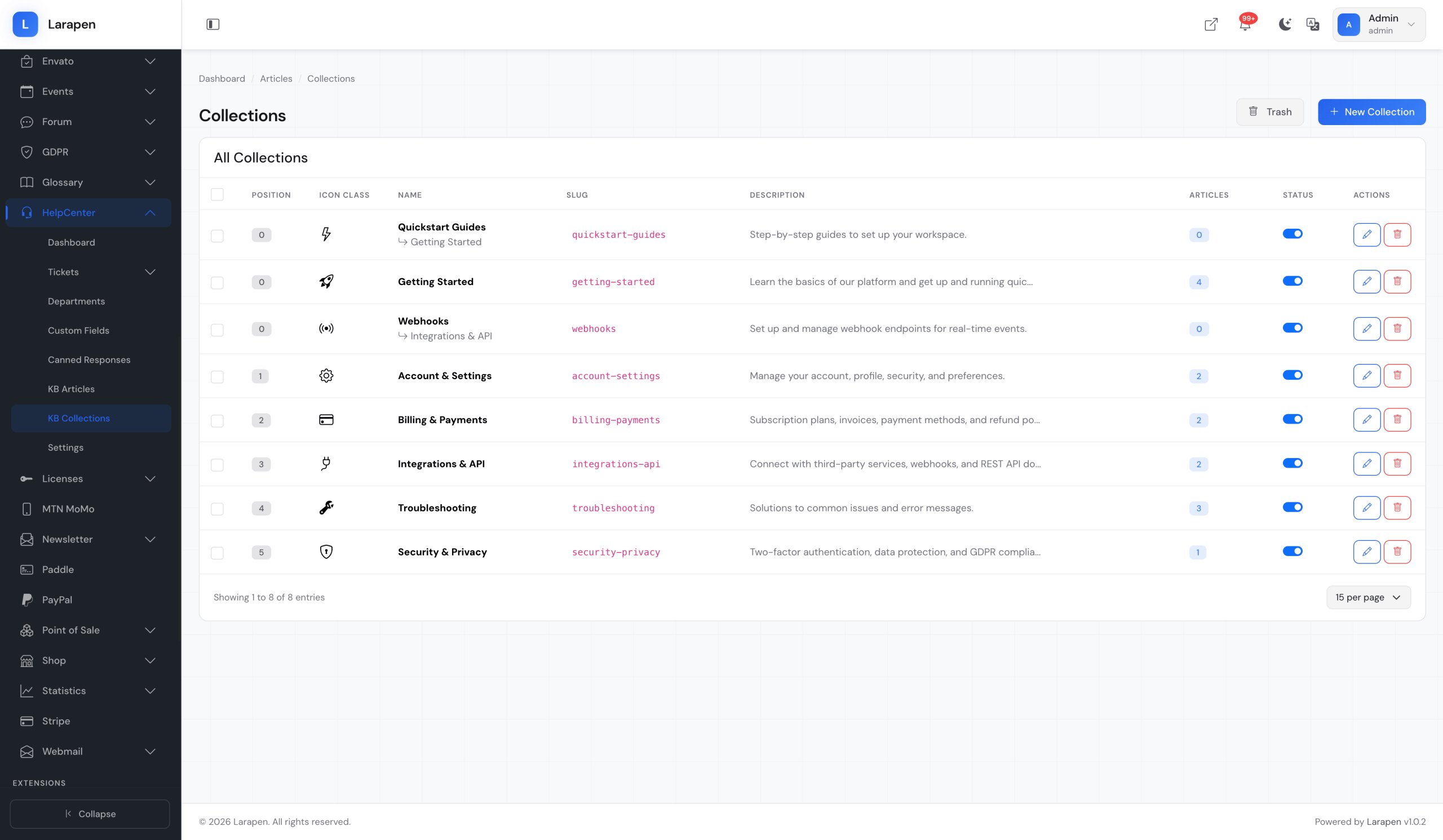 Téléchargez le module Centre d'aide et activez-le. Les migrations s'exécutent automatiquement pour créer toutes les tables nécessaires.