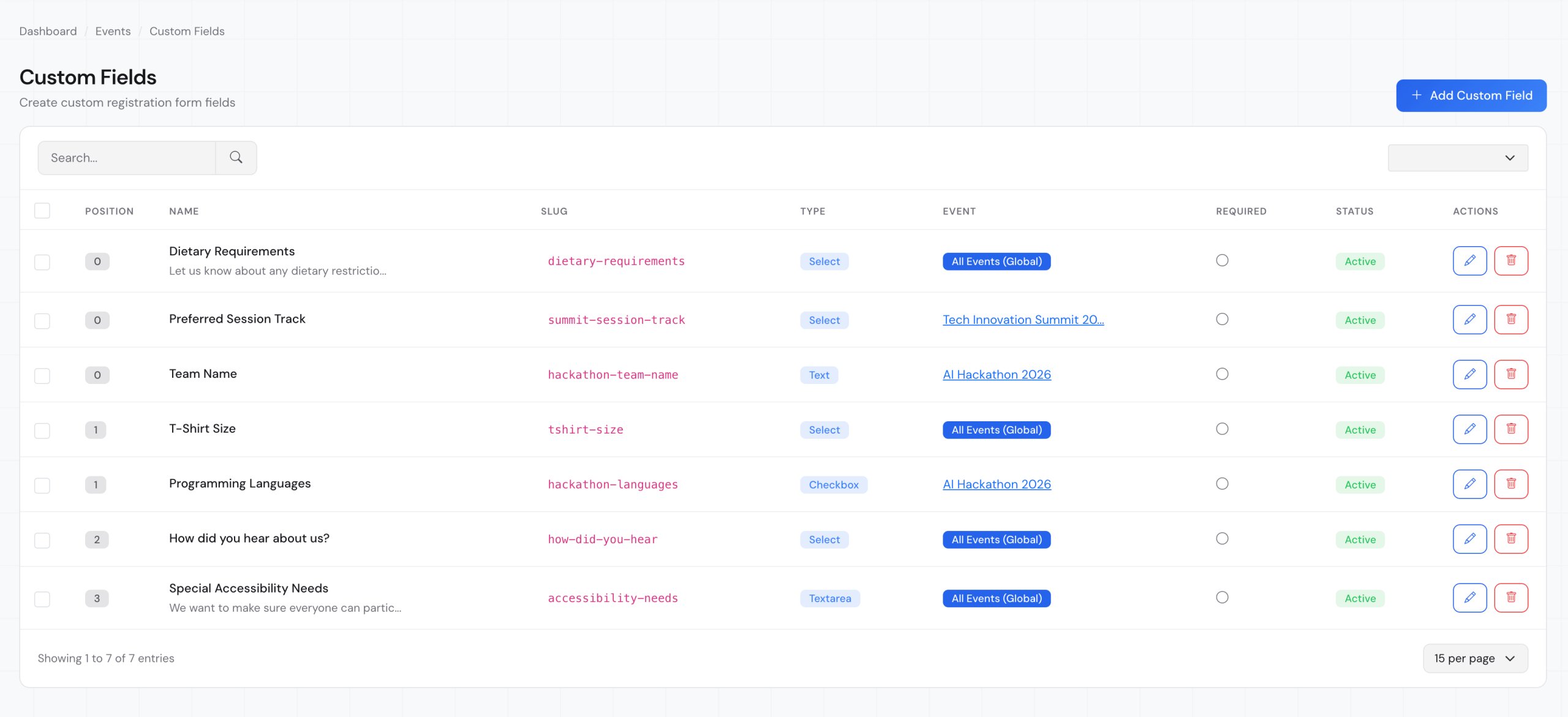 Suivez les inscriptions, envoyez des emails de confirmation, exportez les listes de participants et gérez les enregistrements depuis le panneau d'administration.